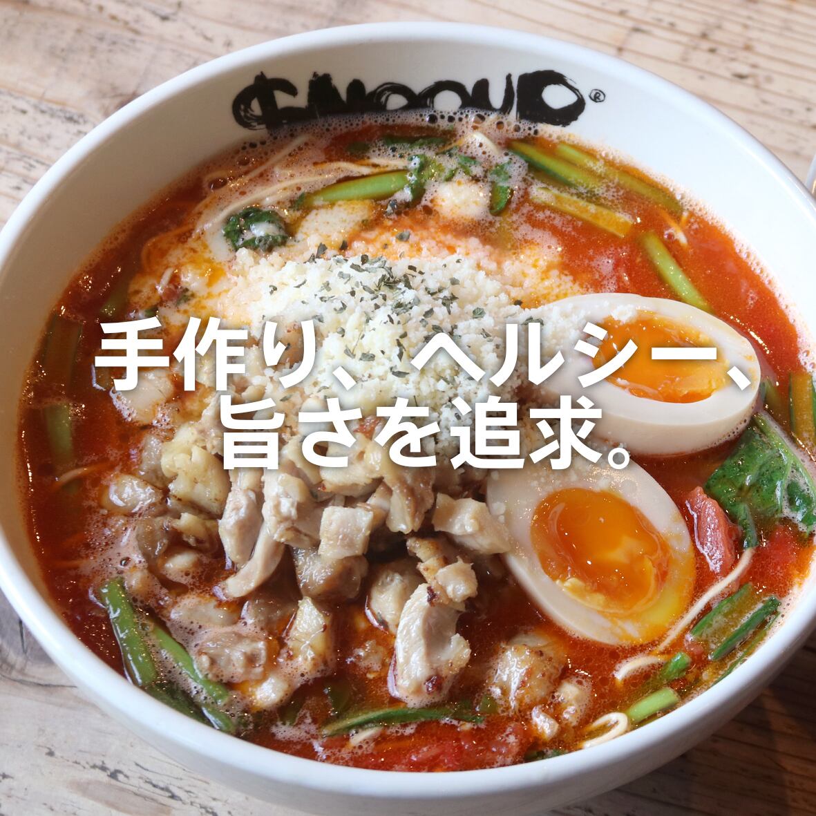 ②麺・鍋にお湯を沸かし麺を茹でる。(かた麺20秒、ふつう30秒、やわ麺1分)※ザルでしっかり湯切りを!!・麺の入った丼にスープを優しく注ぐ。(麺をほぐしながら、スープに馴染ませる)